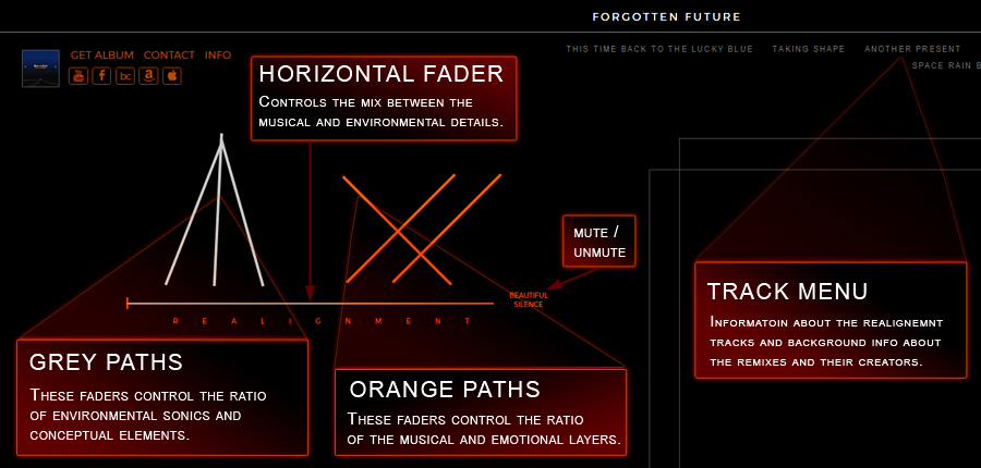 The music of forgotten future is about layers and emotions. This experience gives you the opportunity to align the sonic representation of your own purpose, whlie also finding some background info about the album's tracks.