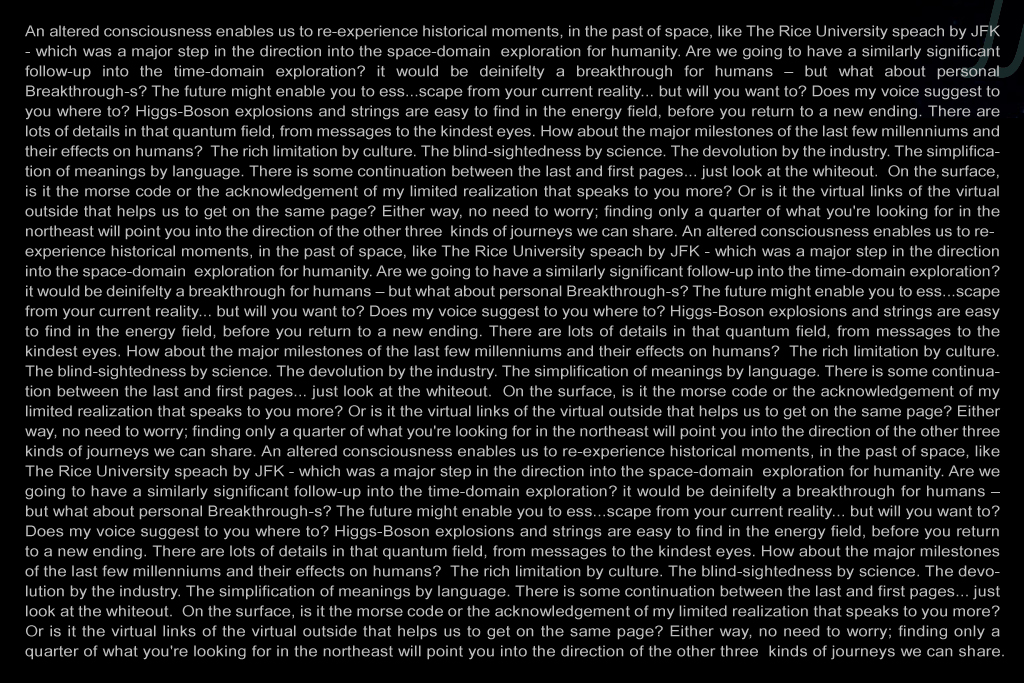 forgotten future: W1 is a story of a journey - one of multiversal scale, beyond the boundaries of time and through new dimensions. It is about the journey we all take one day. We are frightened of the unknown, yet it feels so familiar... it feels like we have been in this environment before...